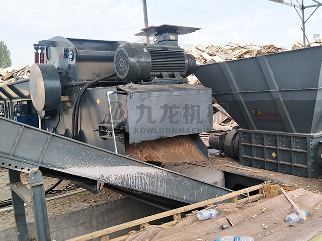 1、進料輸送:放置待破碎板類木材;